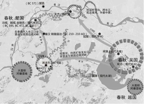 (图9.春秋战国时期(BC 770- BC221)南京古城邑分布过程示意图。)