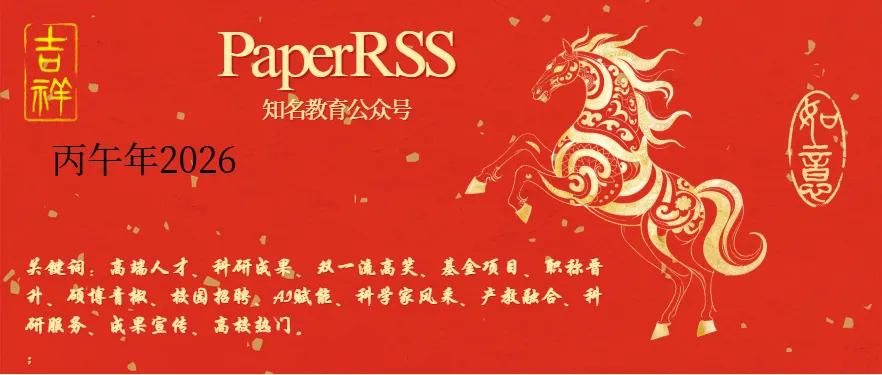 PaperRSS,知名教育公众号。投稿、合作、转载授权事宜请联系本号。微信ID:PaperRSS001 或邮箱:PaperRSS001@qq.com。此外,本公众号为国内实验室招聘人员、科研成果展示提供服务,欢迎垂询。