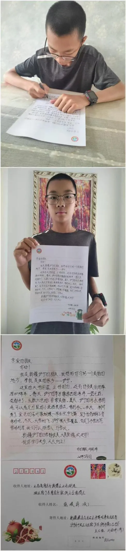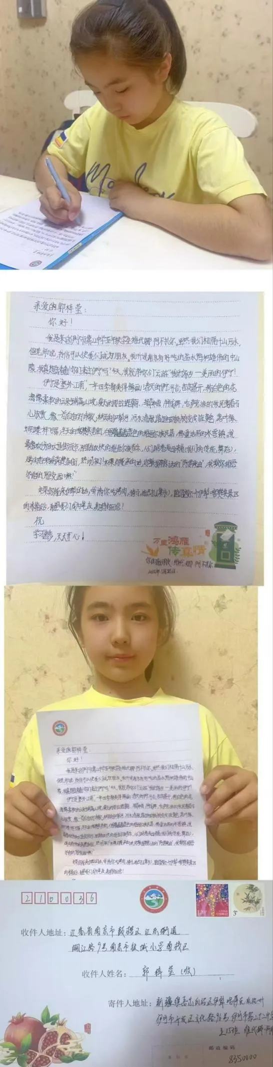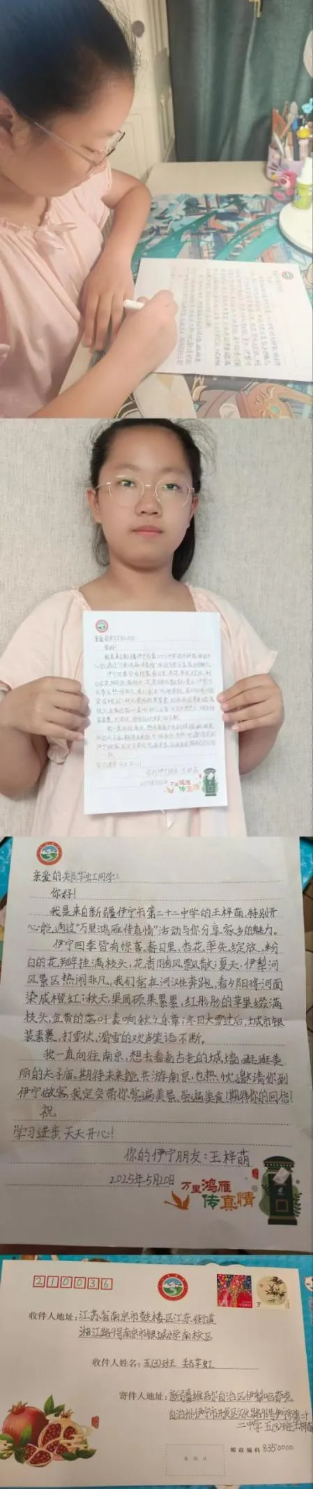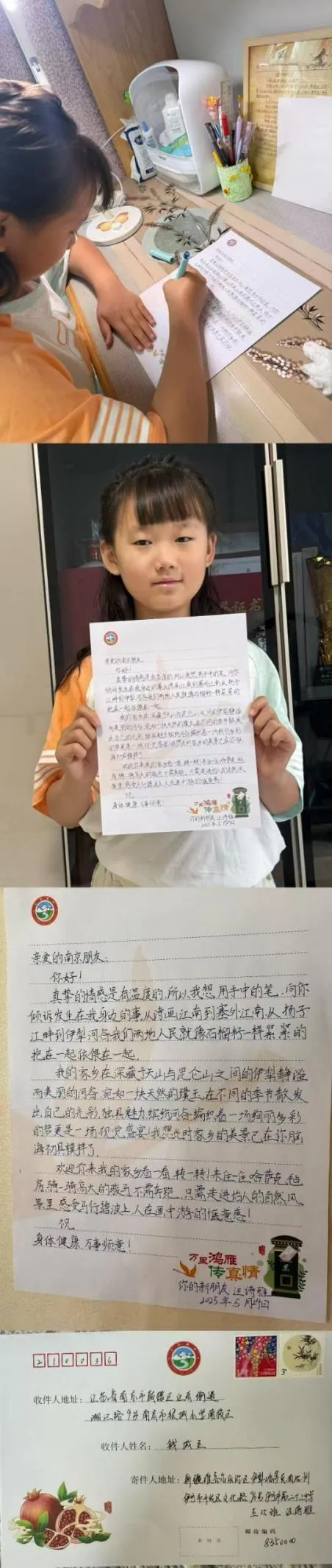 当江南的杏花烟雨遇见西域的灿烂阳光,一场横跨五千里的友谊在笔尖绽放。伊宁的少年以热情的笔墨讲述赛里木湖的辽阔,银城小学的孩子们用稚嫩的笔触描绘梧桐树下的校园生活。每一封书信都是一次心灵的握手,墨香里流淌着对远方的想象,信封里装着分享给“另一个我”的小秘密。鸿雁传书,传递的不仅是文字,更是民族友谊的种子,在东西部孩子心中生根发芽。