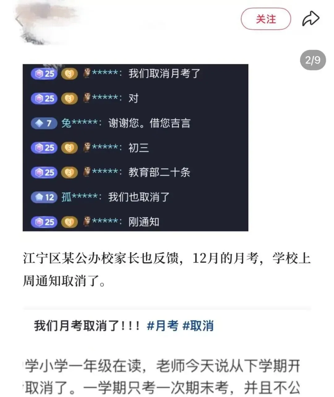 此外,南京有家长在网络上反映,孩子所在学校,取消了12月月考。