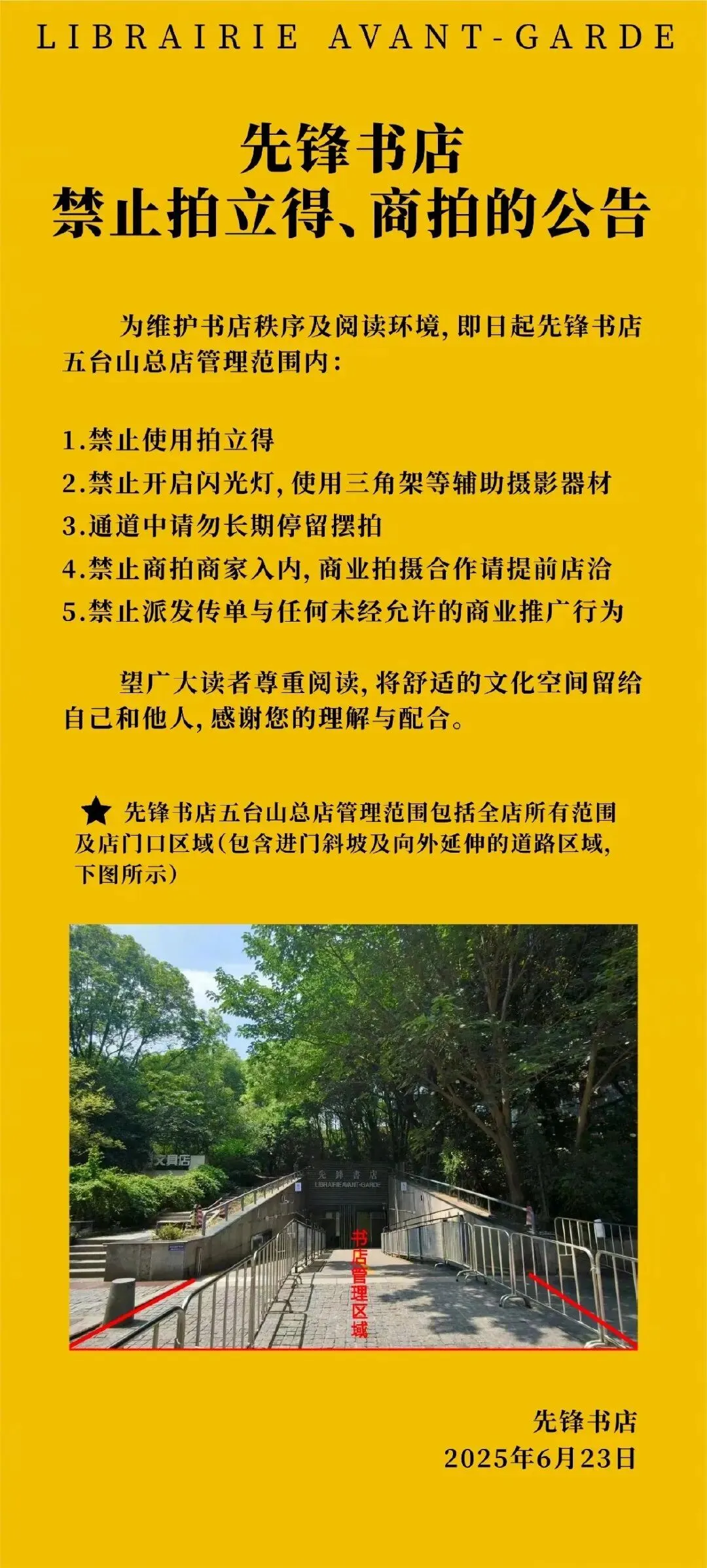 6月23日中午,先锋书店官方账号针对网友疑问作出回应:“由于五台山店已营业二十余年,设备需要维护出新,五台山店门头于近期进行设计改造。”此外,先锋书店官方还发出关于禁止拍立得、商拍的公告,以维护书店秩序及阅读环境。
