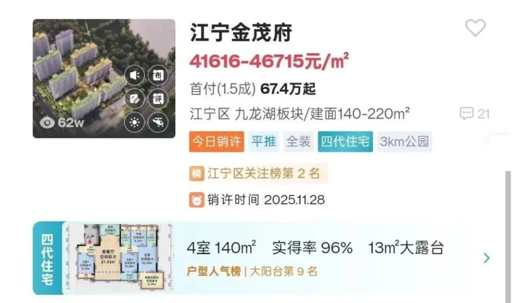 江宁第一豪宅江宁金茂府持续热销,这次再次加推,整体热度很高。
