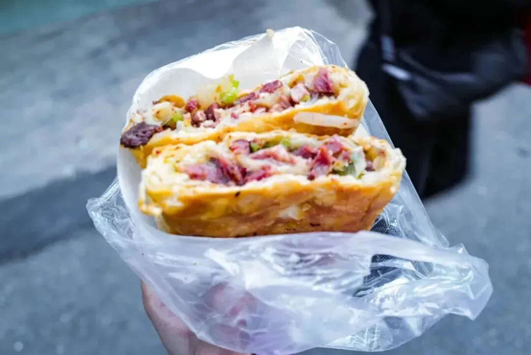 菜煎饼颜值朴实,内里却藏着大乾坤,包裹着多种蔬菜,口感扎实、鲜香不腻,带着花椒孜然的复合香气,像是轻盈版煎饼果子,清爽又管饱。