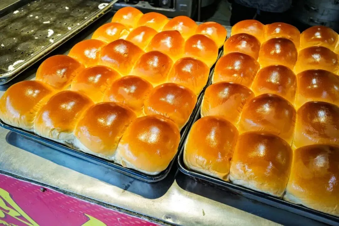因接壤山东,徐州早市藏着地道山东风味不足为奇,惊喜的是这家店居然有现烤老式大面包!刚出炉的面包暄软蓬松、色泽金黄,湿软绵密中带着韧劲,大气孔能拉丝,微甜不腻,满是浓郁奶香,妥妥的童年回忆杀。