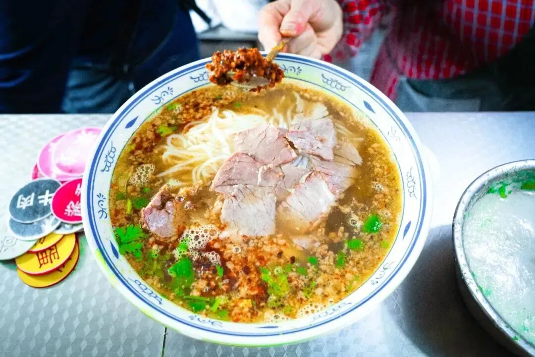 必点牛肉酱香米线!徐州竟是隐藏的嗦粉大户,这碗米线的精髓全在汤头与小料。脆生辣榨菜、本地万通米醋、浓稠肉酱、香而不辣的红油,再撒上一把香菜,颜值与口味双在线,嗦起来鲜香过瘾,越吃越上头。