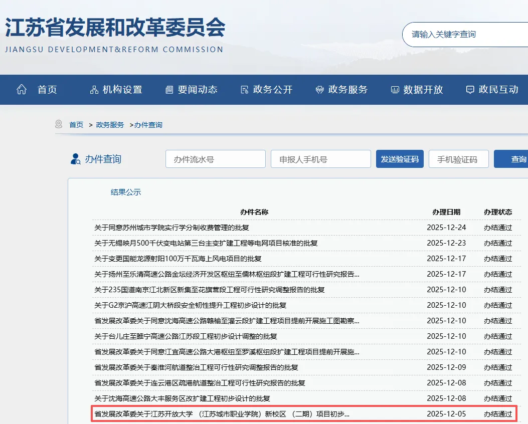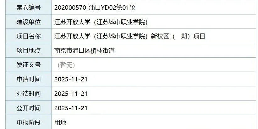 此前,江苏开放大学(江苏城市职业学院)新校区(二期)项目用地、全要素条件均已审核通过。