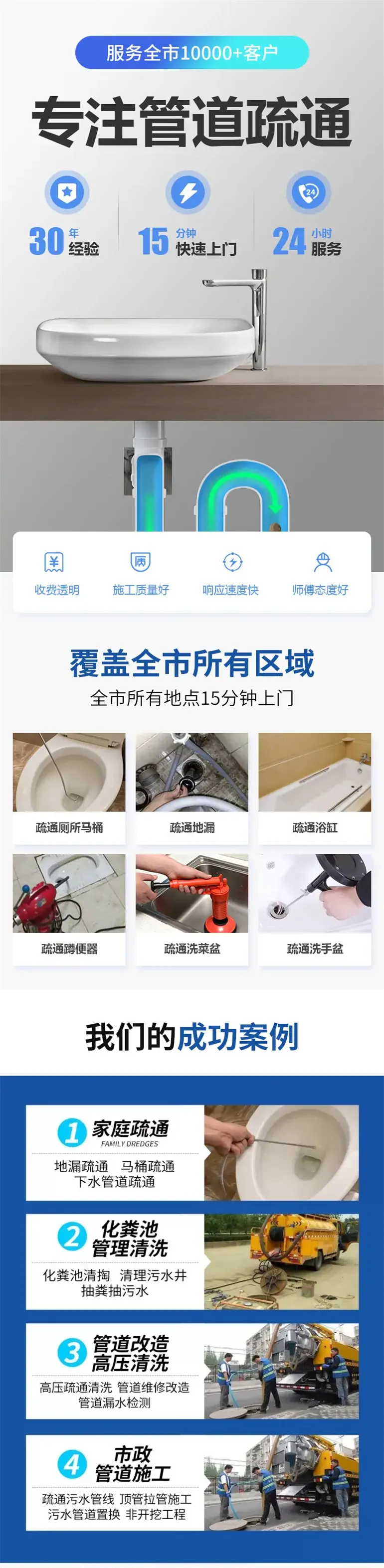 ✅ 厨房下水道疏通(油污、菜渣、结块堵塞)