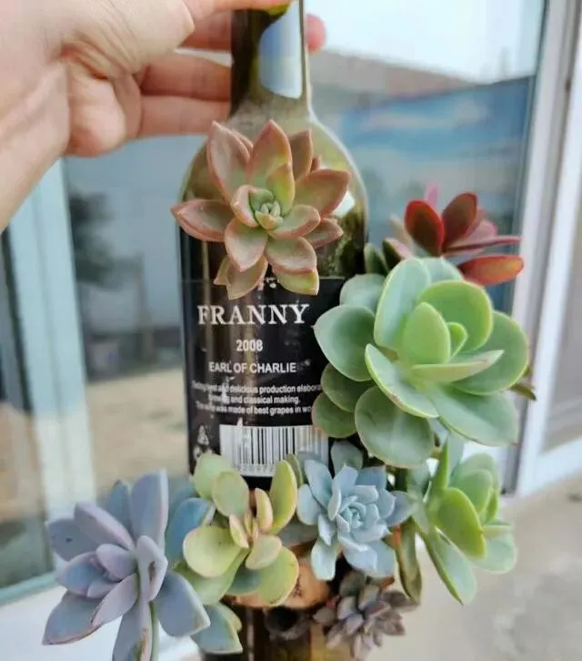 仙人掌、小石花这类迷你型的最合适 , 塞进红酒杯刚刚好 , 不会头重脚轻。