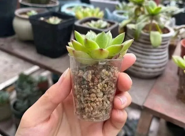 透明的杯身 , 能看见土 , 能看见根系 , 多肉往里头一种 , 状态出来以后 , 那叫一个好看!