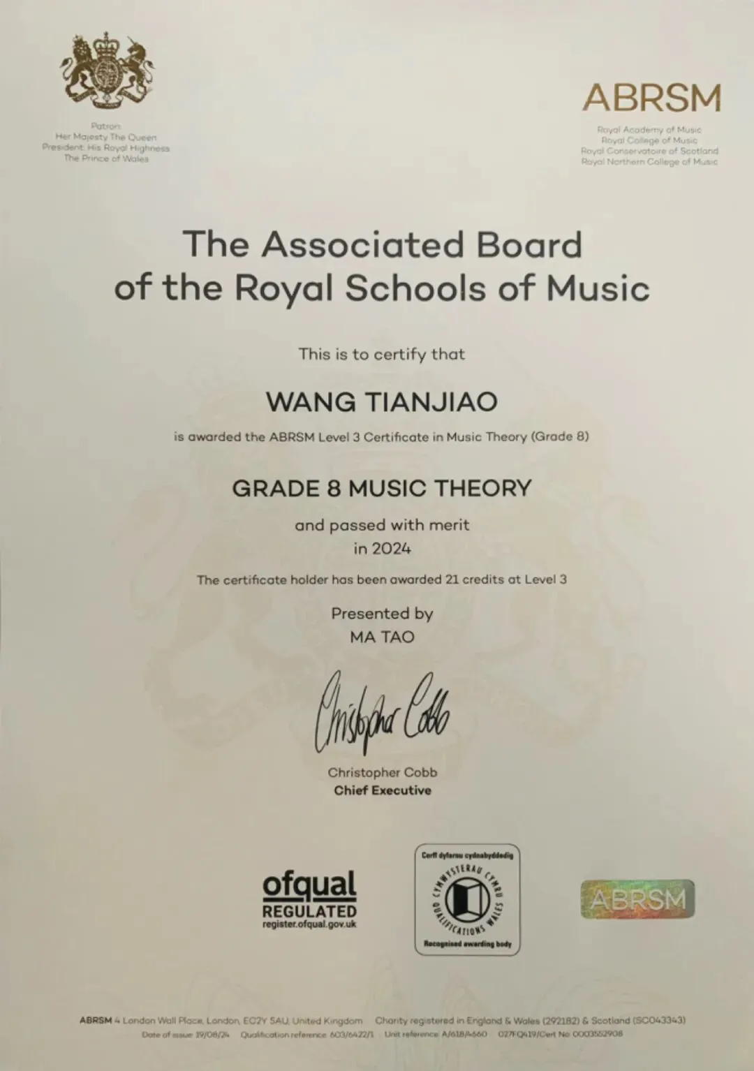 英国皇家音乐学院乐理八级Merit