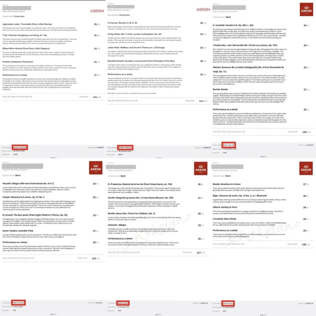 国际钢琴考级教学成绩展示