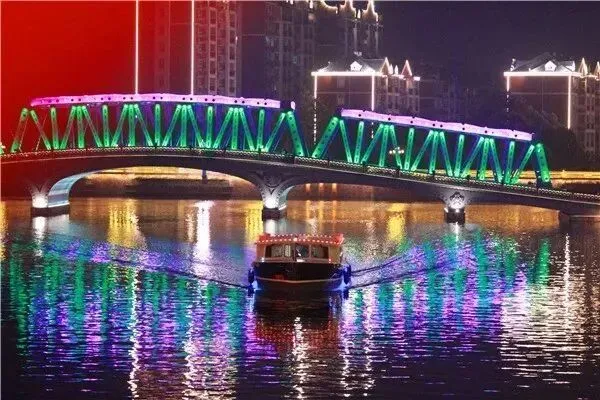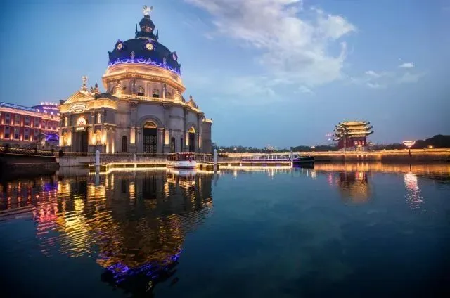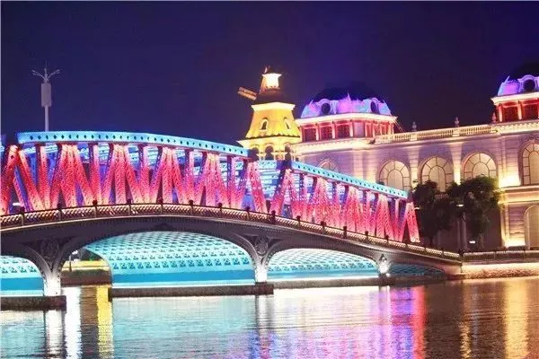 一幢幢欧式风格的建筑、一座座异国风情的雕塑,一缕缕五彩斑斓的灯光,在连绵广阔的水域中,投下一波波令人心动的波澜,在一股浓郁的欧陆风情中,恍然穿越。