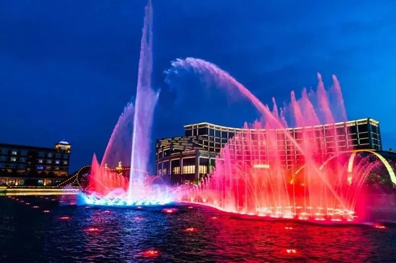 绚丽多彩的音乐喷泉,晚上七点,伴随着悠扬的江南音乐,水光炫动,五光十色。时而优雅,时而奔放,水花配着变幻的灯光美轮美奂。