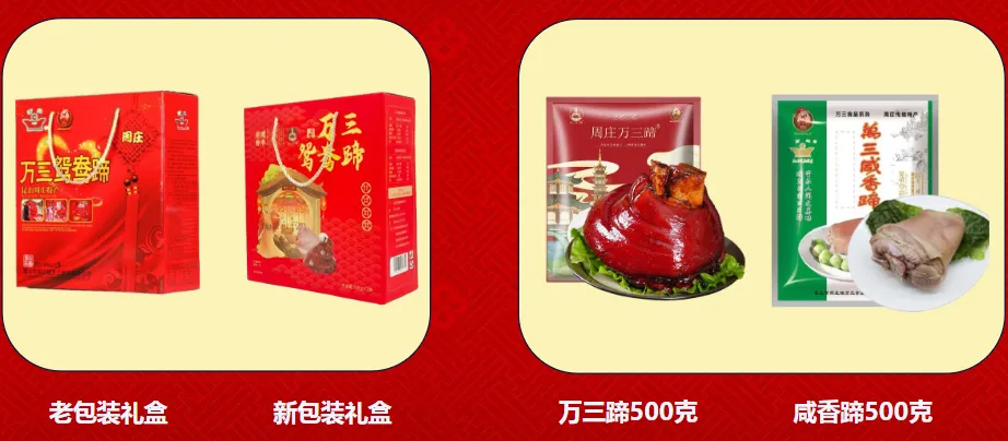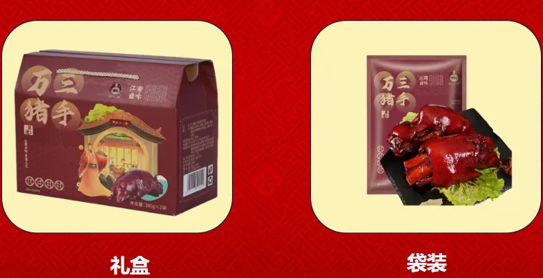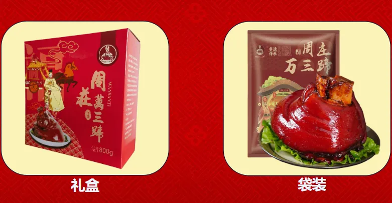 公司产品线涵盖即食卤味、非遗礼盒及家宴套餐三大系列。明星产品包括万三蹄、万三猪手、爊爊鸭、醇香排肉等,其中“万三蹄”礼盒采用环保材质包装,设计融合江南文化元素,兼具礼品属性与实用价值。