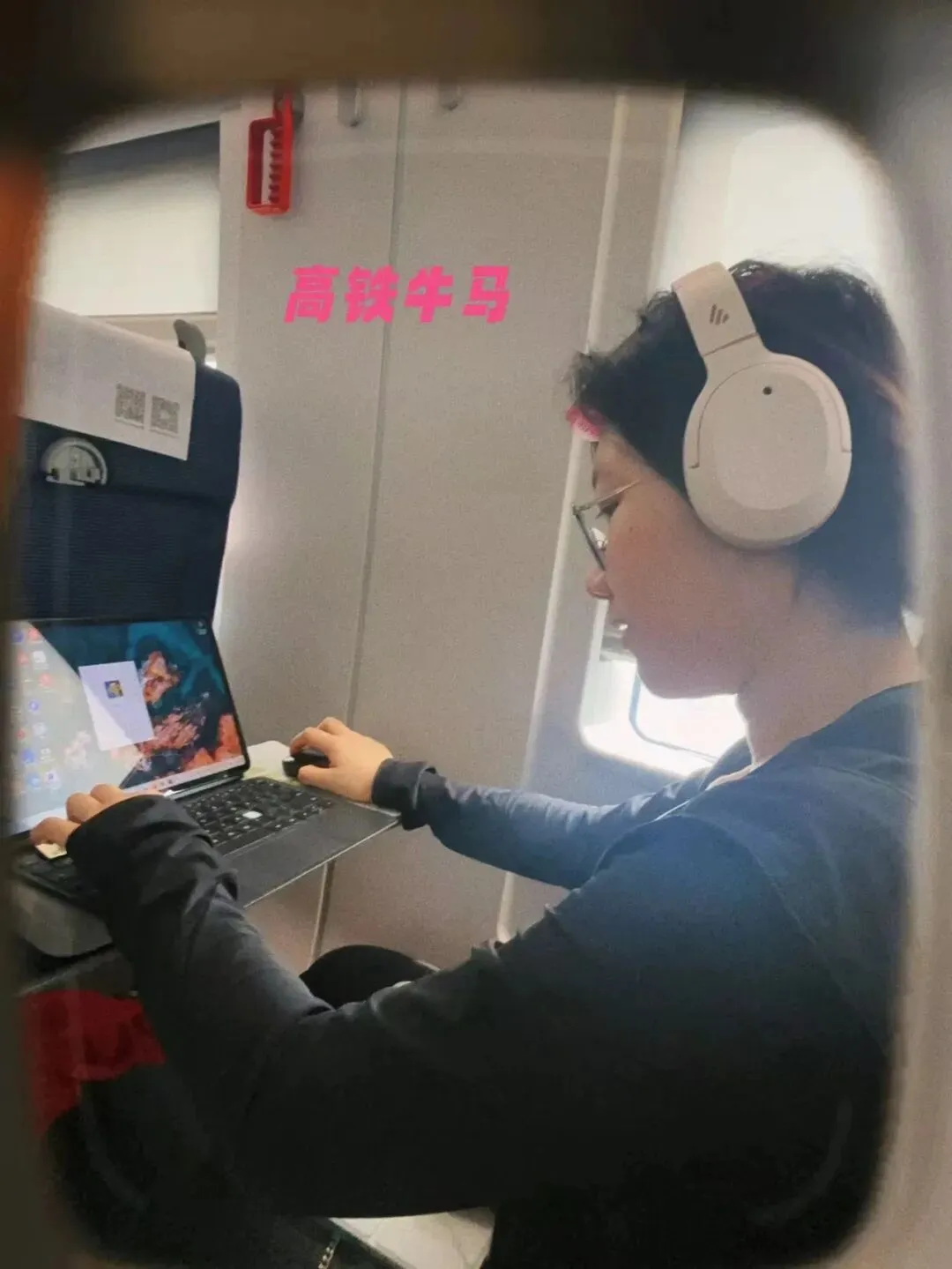从寿县的动车站前往苏州。妞儿接到辅导员的任务,车上一路都打开笔记本电脑在干活,她自嘲说自己是“高铁牛马”。