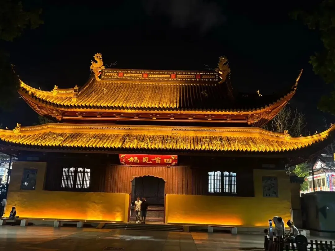 酒足饭饱,出发观前街。跟大部分城市的步行街差不多,人潮涌动,霓虹灯闪烁,商品琳琅满目。逛了很长一段时间我们才发现,街上竟然有一座道观叫“玄妙观”。玄妙观,始建于西晋咸宁二年(公元276年),距今已有1700多年历史,被誉为“江南第一古观”。是先有“玄妙观”,才有后来的商业街“观前街”。
