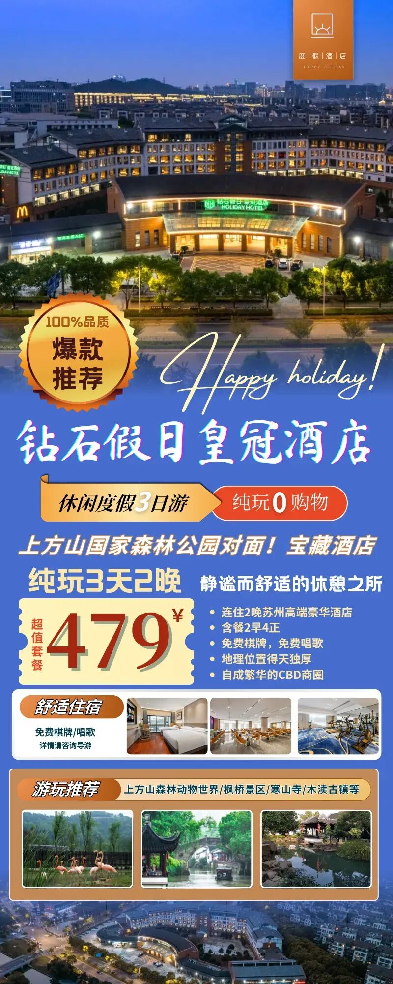 1、【住】全程入住苏州豪华酒店——钻石假日皇冠酒店(虎丘区上方山国家森林公园店)