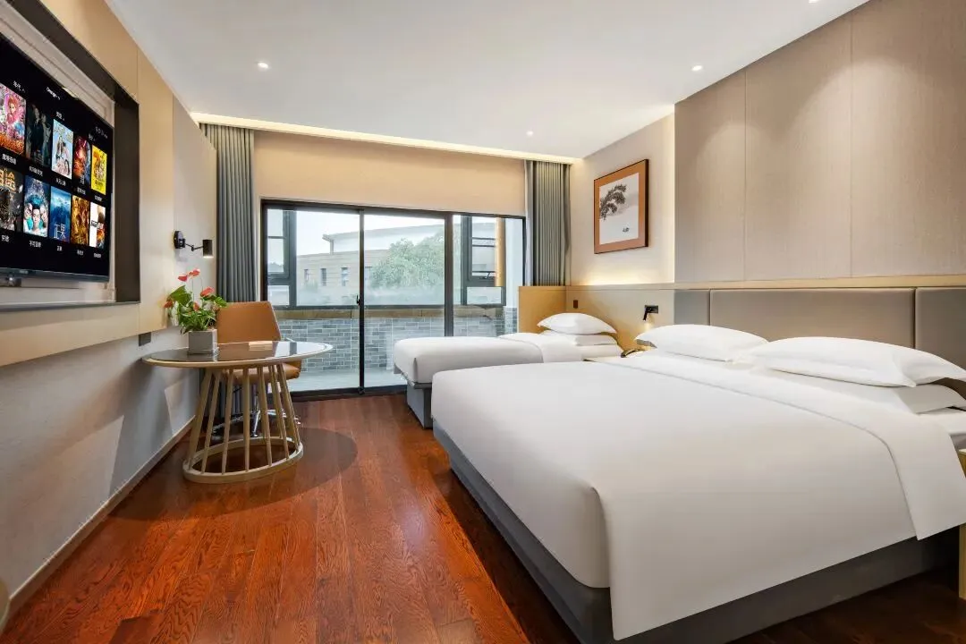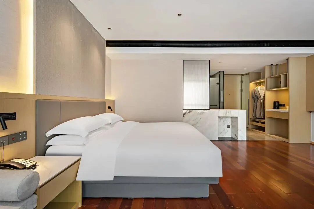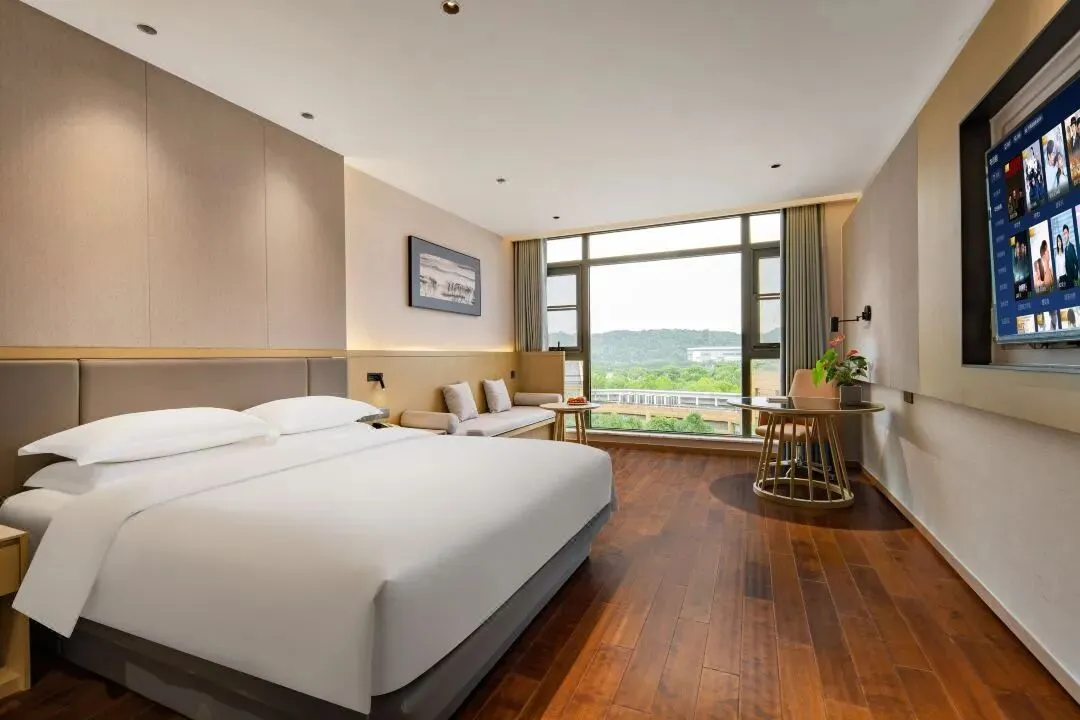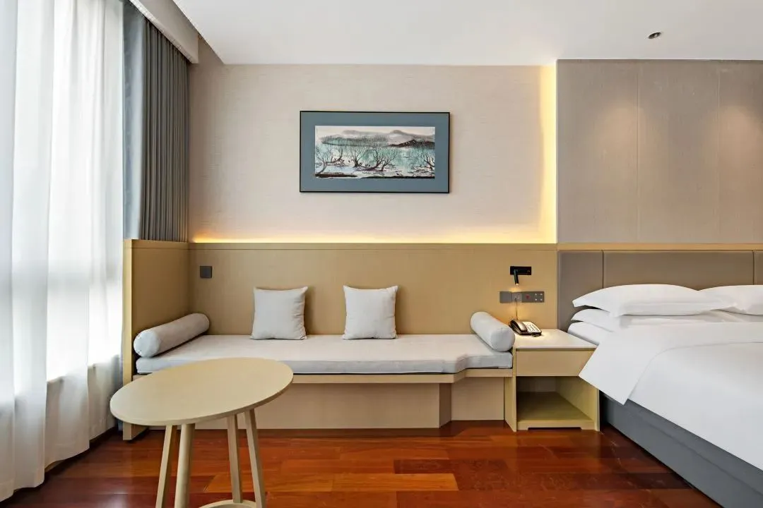 酒店的客房设计典雅而宽敞,部分临山房间更是将上方山的秀丽风光以及金光大佛的庄严景象尽收眼底,为宾客提供了一处静谧而舒适的休憩之所。套餐为两人一间基础房型,单住须补房差。