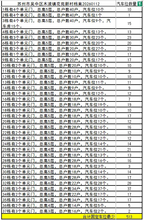 26栋有2个单元门,总高4层,总户数16户,汽车位5个。