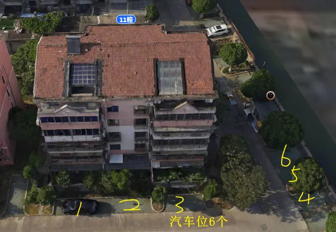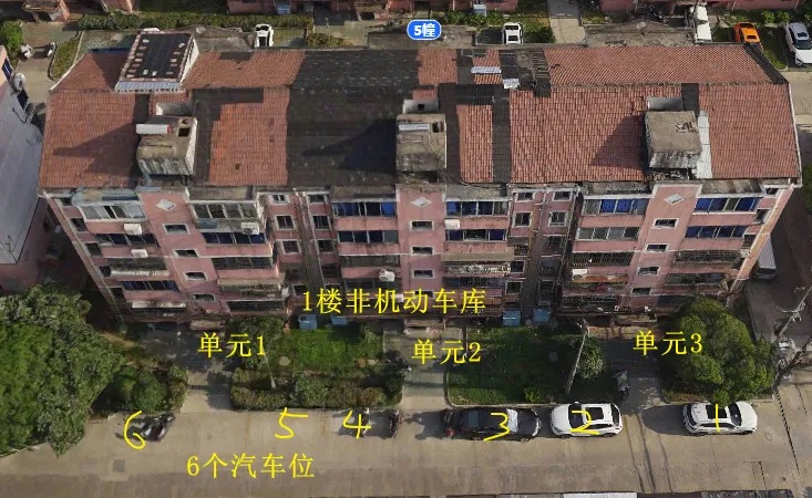 6栋有3个单元门,总高5层,总户数30户,汽车位20个。