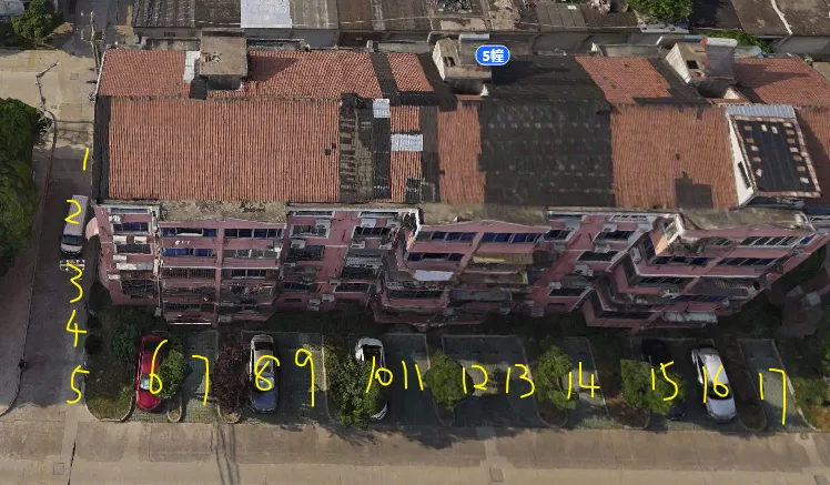 5栋有3个单元门,总高5层,总户数30户,汽车位23个。