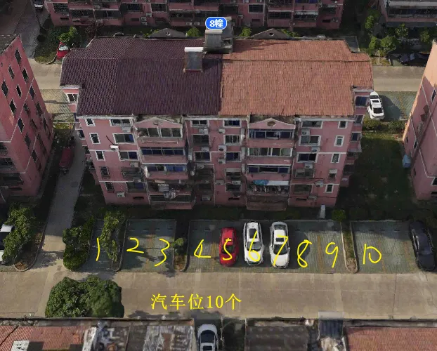 8栋有1个单元门,总高5层,总户数10户,汽车位17个。