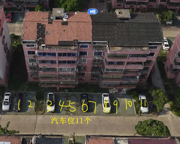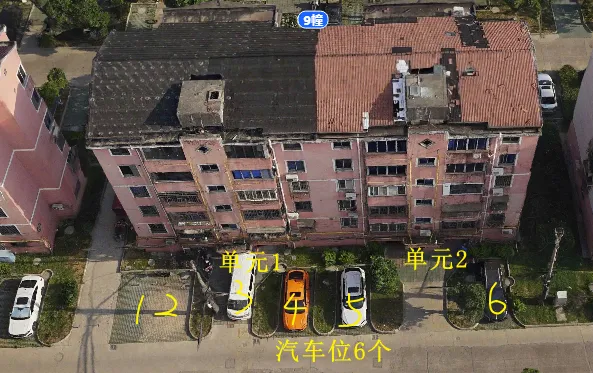 9栋有2个单元门,总高5层,总户数20户,汽车位17个。