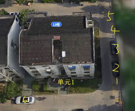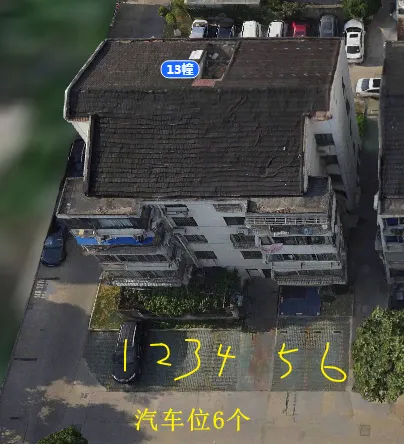 13栋有1个单元门,总高5层,总户数9户,汽车位11个。