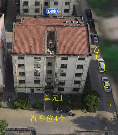 14栋有1个单元门,总高5层,总户数9户,汽车位9个。