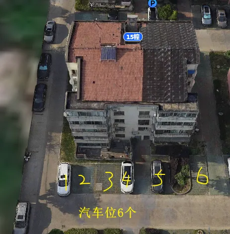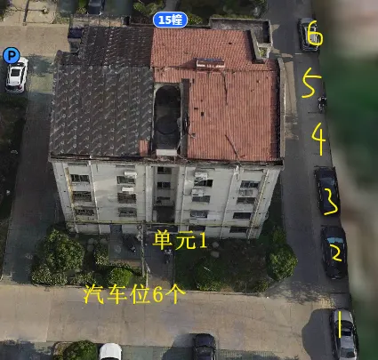 15栋有1个单元门,总高5层,总户数9户,汽车位12个。