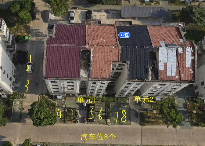 17栋有2个单元门,总高5层,总户数18户,汽车位19个。