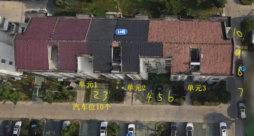 18栋有3个单元门,总高5层,总户数28户,汽车位10个。