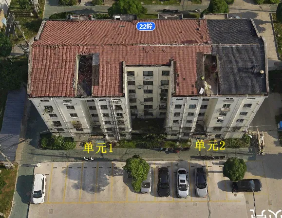 22栋有2个单元门,总高5层,总户数18户,汽车位12个。