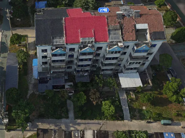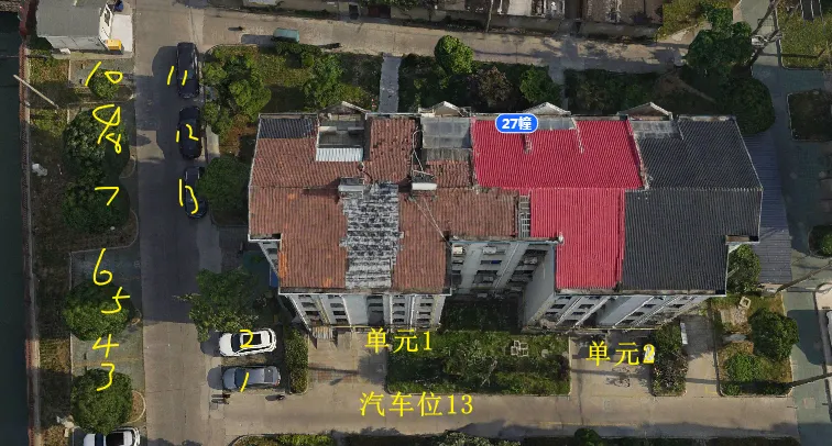 27栋有2个单元门,总高5层,总户数18户,汽车位13个。