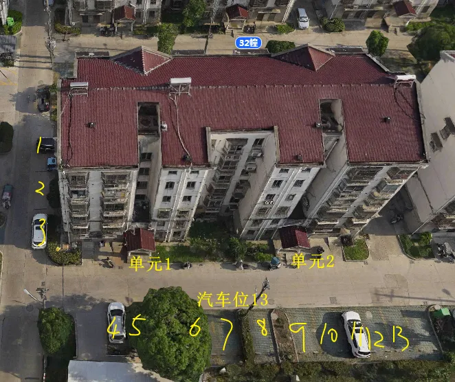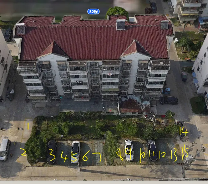 32栋有2个单元门,总高6层,总户数22户,汽车位28个。