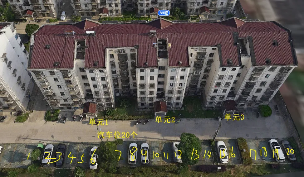 33栋有3个单元门,总高6层,总户数34户,汽车位37个。