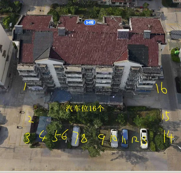 34栋有2个单元门,总高6层,总户数22户,汽车位17个。