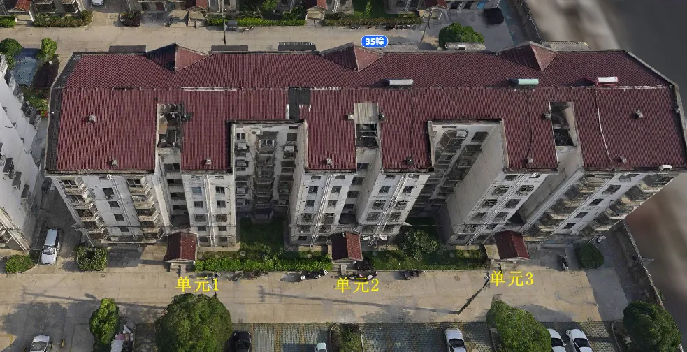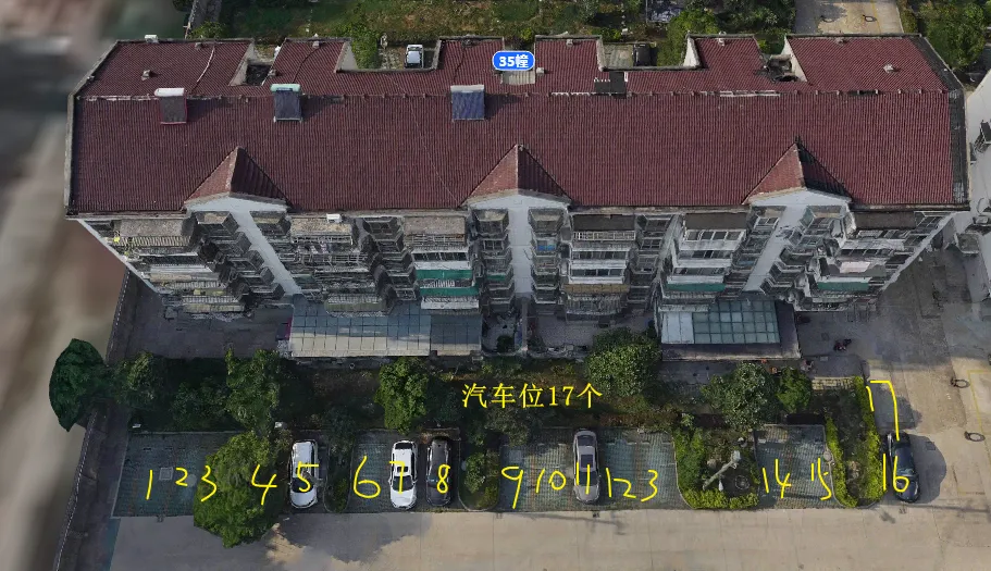 35栋有3个单元门,总高6层,总户数34户,汽车位17个。