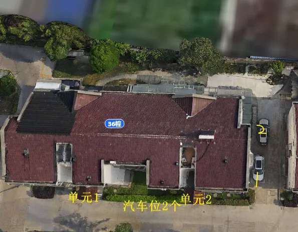 36栋有2个单元门,总高4层,总户数14户,汽车位5个。