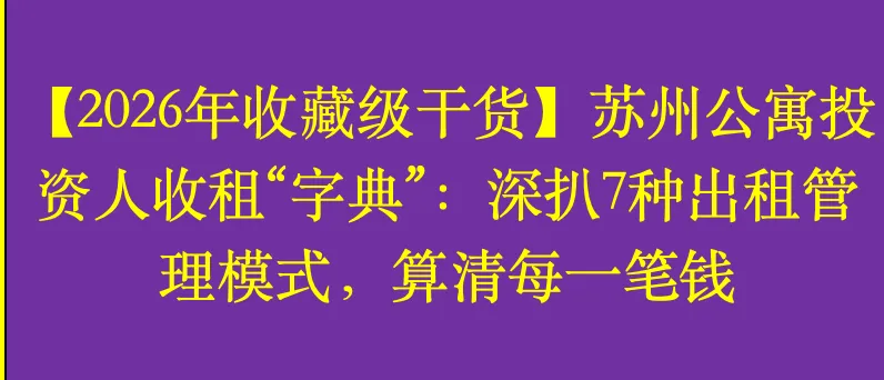 在苏州投资公寓,出租管理是决定收益的关键一环。今天,我将以16年公寓投资管理经验,为您全面解析2026年苏州公寓市场的7种主流出租方案。