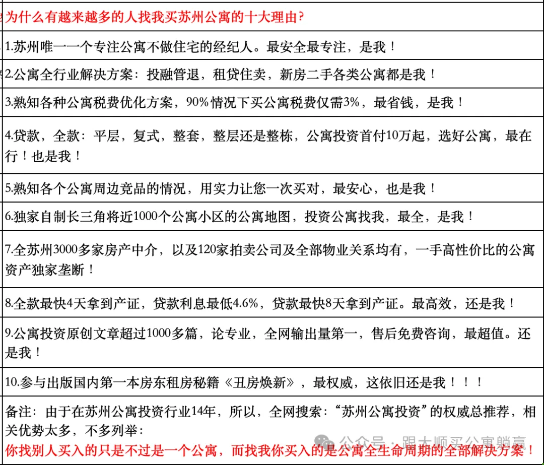 在过去的15年,本人走遍苏州315个公寓小区:持续帮助1000多人通过买入苏州的公寓: