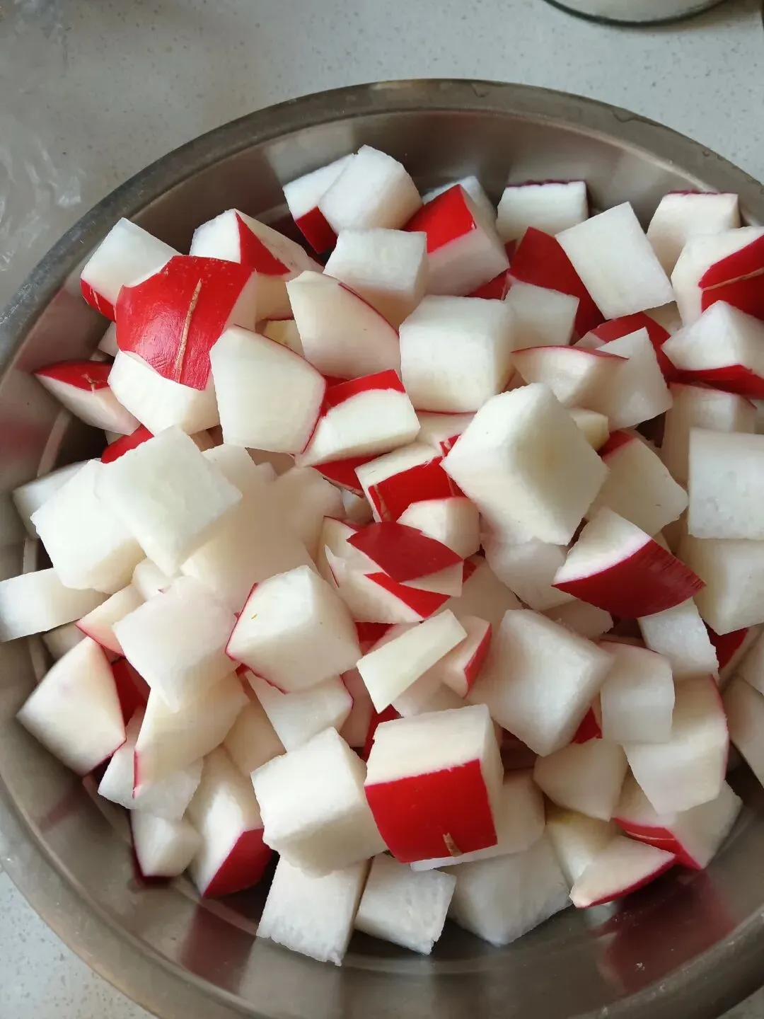 3.依次放入花生米、黄豆(或青豆)一起炒至入味。再把萝卜放入。