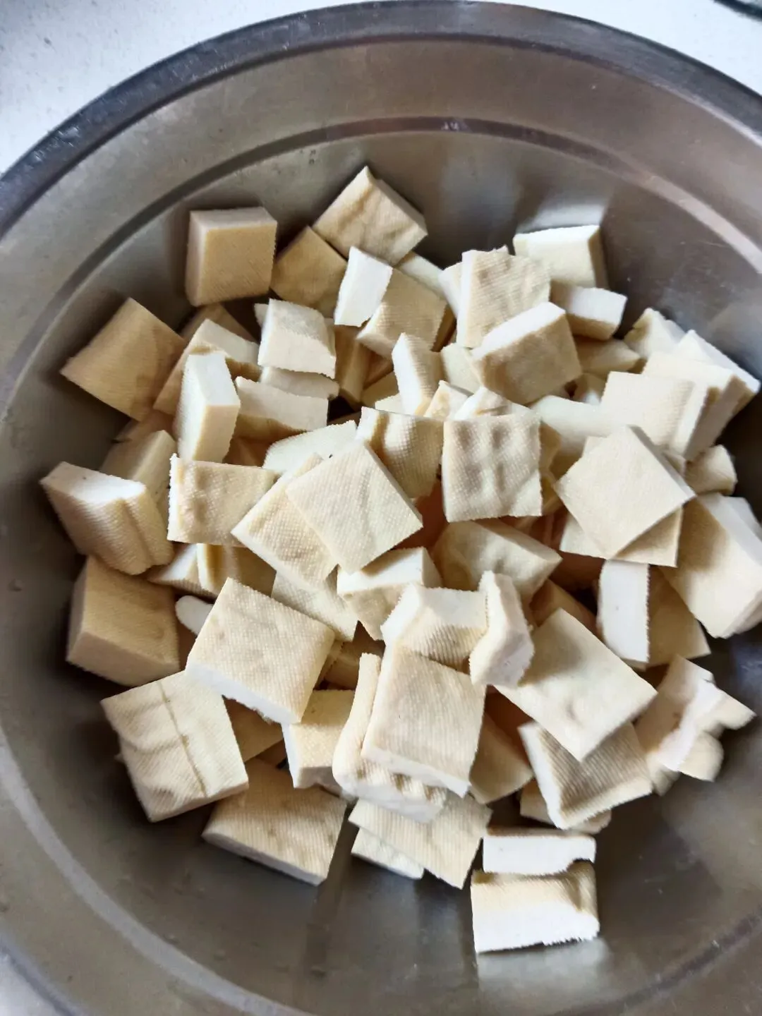 做法: 1.五花肉、红萝卜、豆腐干均切成大小相等的丁,花生米、黄豆(或青豆)用温水泡发两个小时以上,备用。