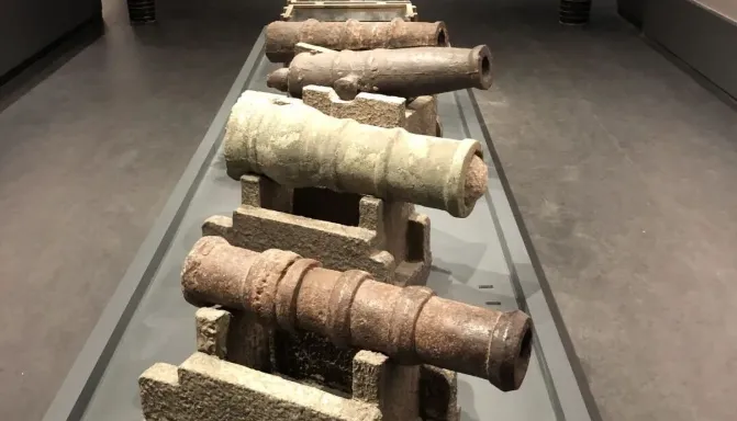 这种火炮作为后装类型火炮,有制作轻便,火药补充迅速,能连续开火的特点,又被称为速射炮。此外,遗址中还出土了迄今全国最早的明朝鸟铳。鸟铳长116厘米,口径2.5厘米,具有身管长,口径小,射程远,命中率高等优点,是近代步枪的雏形。