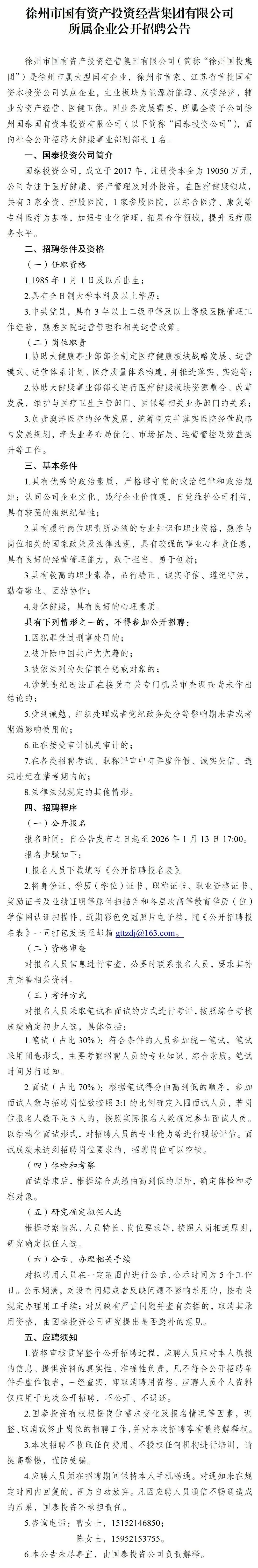 【徐州招聘】徐州市国有资产投资经营集团有限公司所属企业招聘公告