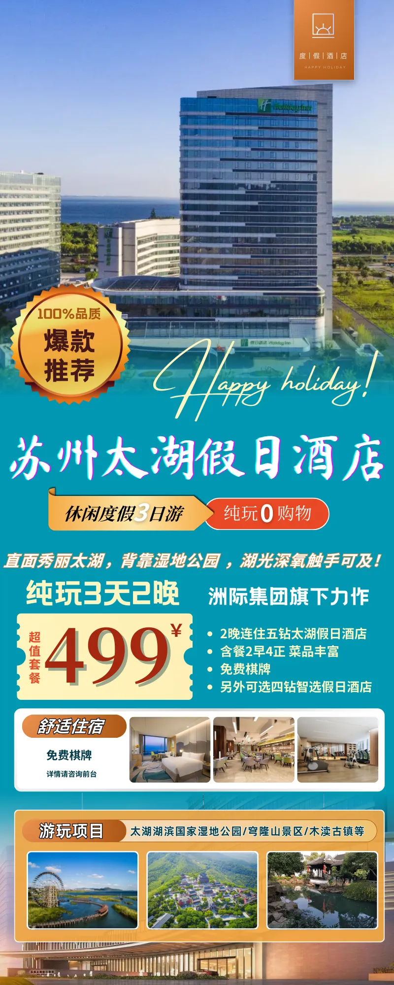 览尽太湖山水【苏州太湖智选假日酒店/苏州太湖假日酒店】低至三日399!含餐2早4正,入住洲际旗下,临近太湖度假,周边众多景点!