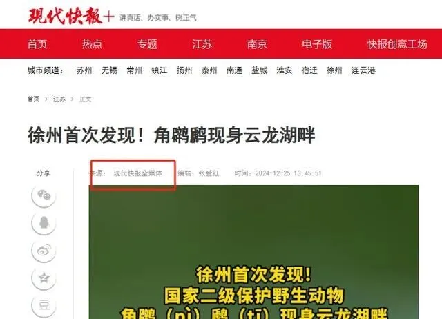 老杨这次的发现 , 说明徐州的生态环境确实在变好。