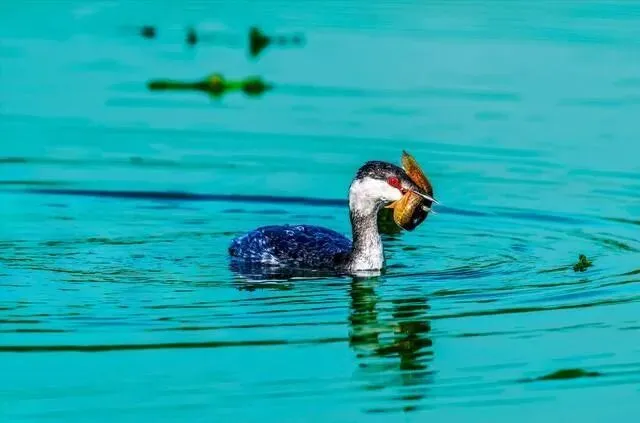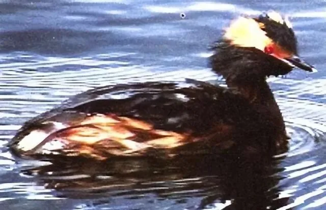 晚上回家仔细一查 , 越看越像传说中的角䴙䴘。