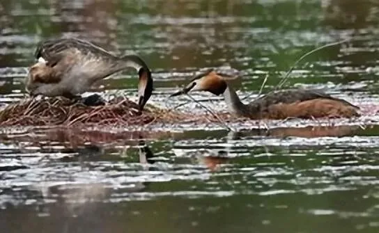 它们的巢穴很特别 , 用水草搭的 , 漂在水面上。