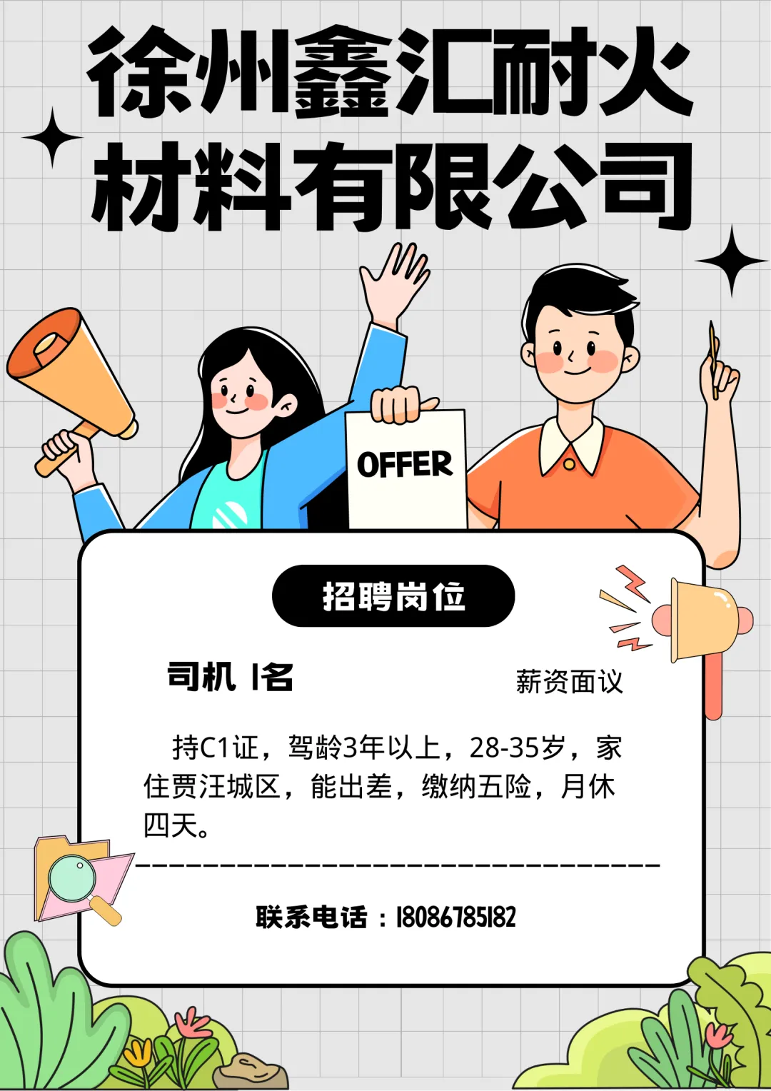 >徐州鑫汇耐火材料有限公司招聘司机1名